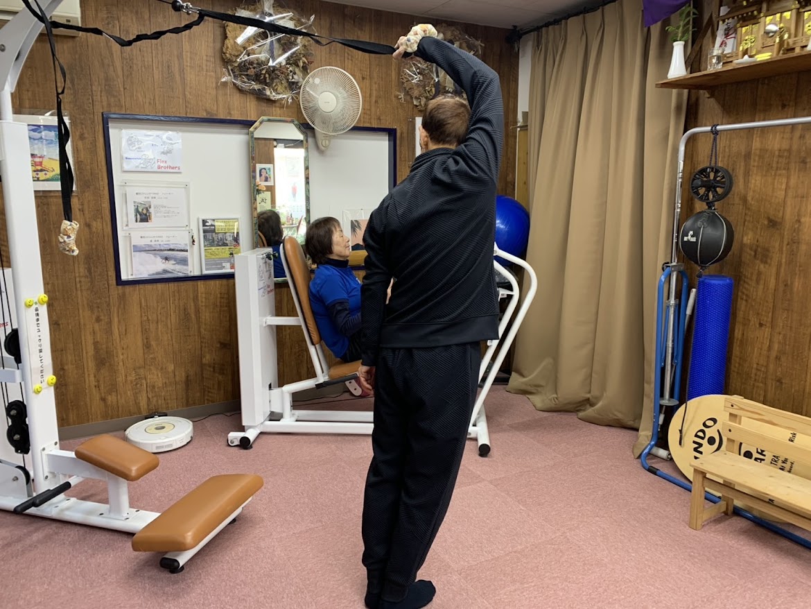 よく目にする”成功した事例(宣伝文句)を真に受けないでください!”スグレッチは訓練(継続的な練習)です。ヨガのポーズや空手の形(精神修行)などの様に、身体全体を意識し、リズミカルで複雑な動きを加える事で、脳の血液循環も良くなり学習能力が上がります。結果、力(筋力)に頼らないバランスの整った動きをマスターでき、しぐさが若返ります。また、脳が活性化する事で認知症予防にも効果的です。直レッチは誰でも簡単にできる動きですが、スキンシップや会話(アドバイス)が大切です。来店時お声がけして、二言三言会話してから始めて頂きます。不思議と身体のほぐれ方が違います。そのままパーソナルレッスンさせて頂きながら最後までお付き合いする事もあります。心と身体のバランスが大切な事を一緒に実感して下さい。